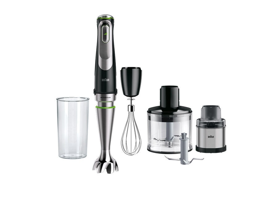 With multiple attachments a blending wand a whisk a masher a beaker a 15-cup Mini chopper and a jug blender the 700-watt mq9 hand blender is the game-changing kitchen appliance that lets you effortlessly tackle the most challenging jobs. Blend chop whip slice shred and mash. The breakthrough technology in Brauns next-generation hand blender delivers groundbreaking innovations to let you easily express your culinary vision.