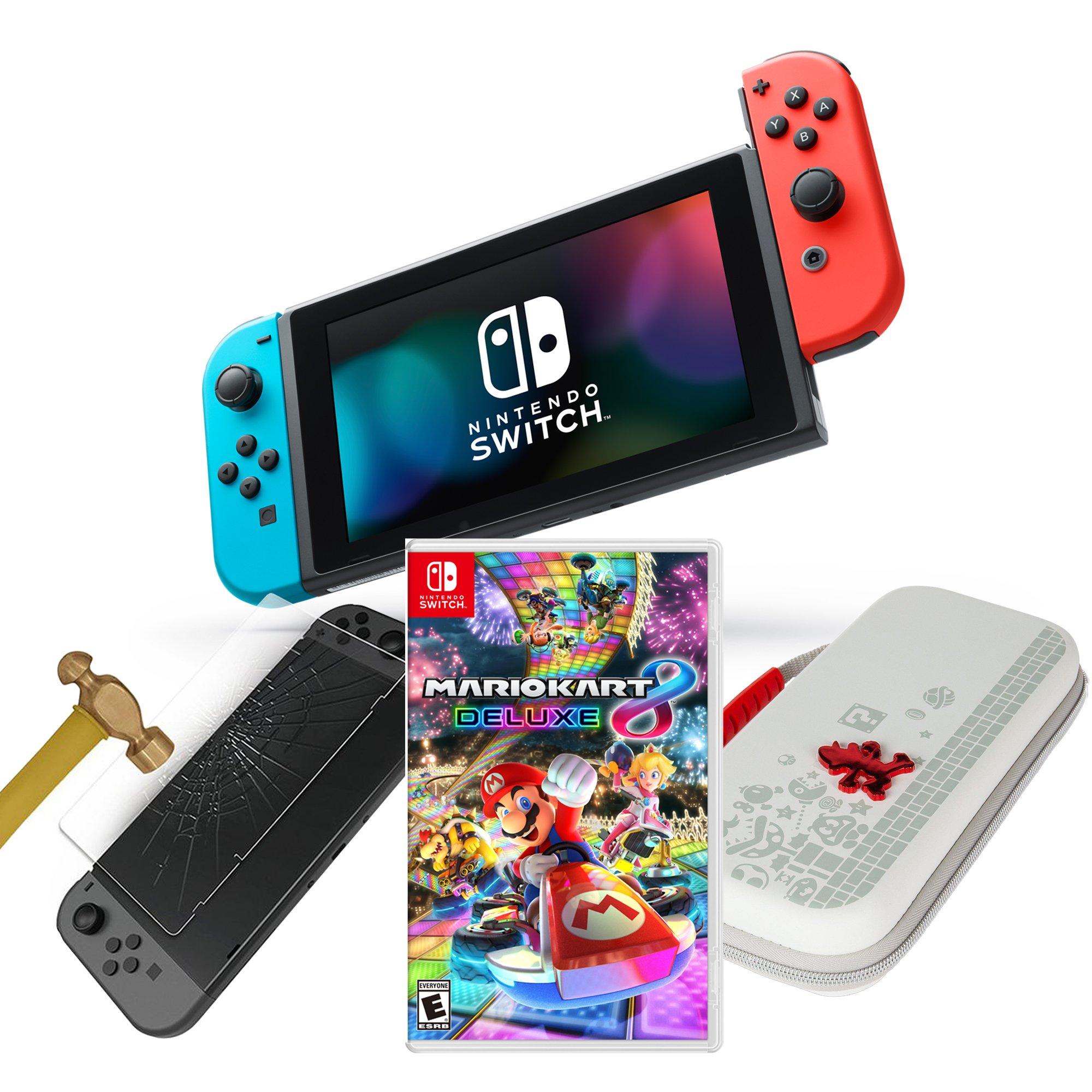Up to 7 cash back The Nintendo Switch Mario Kart 8 Deluxe Bundle is ideal for fans. This gaming system provides single and multiplayer thrills on the TV and in the palm of your hands. Red and Blue Joy-Con Improved Battery Life 32GB ConsoleSuper Mario Kart 8 Deluxe Super Mario Odyssey Game Disc and Deluxe Travel Case 51995 2 Offers.