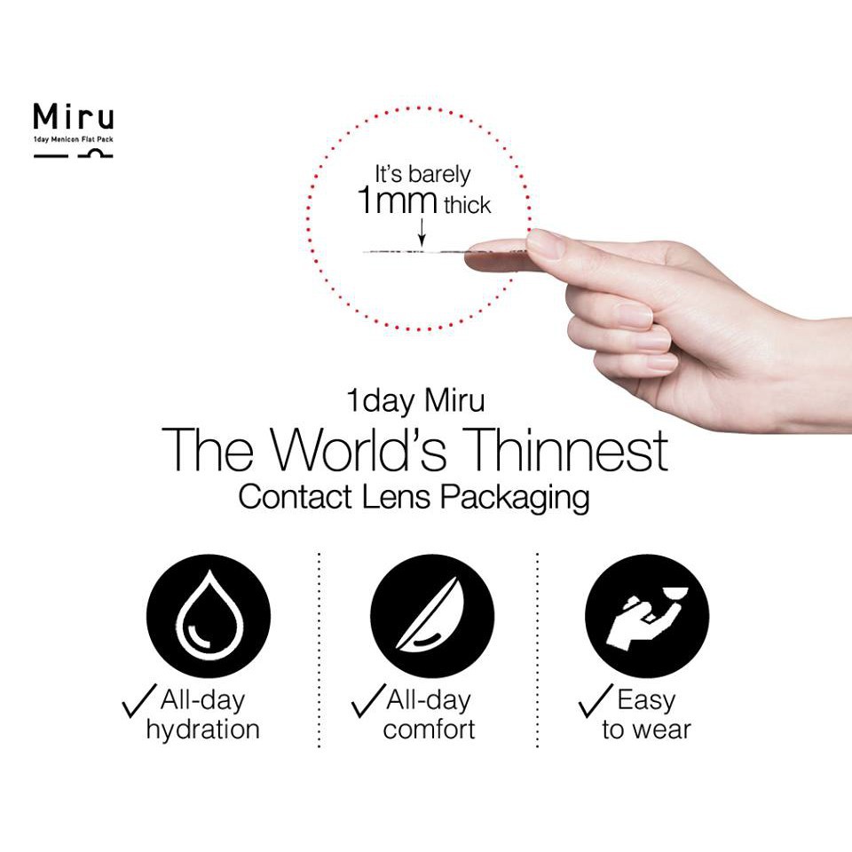 Miru 1 day contact lenses have the worlds thinnest packaging for daily disposable contact lenses without the usual blister-pack shape. Hier Versandkostenfrei - Nur über diesen Link.