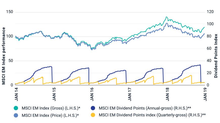 The index is designed to capture the performance of companies in MSCI EM that have consistently increased dividends every.